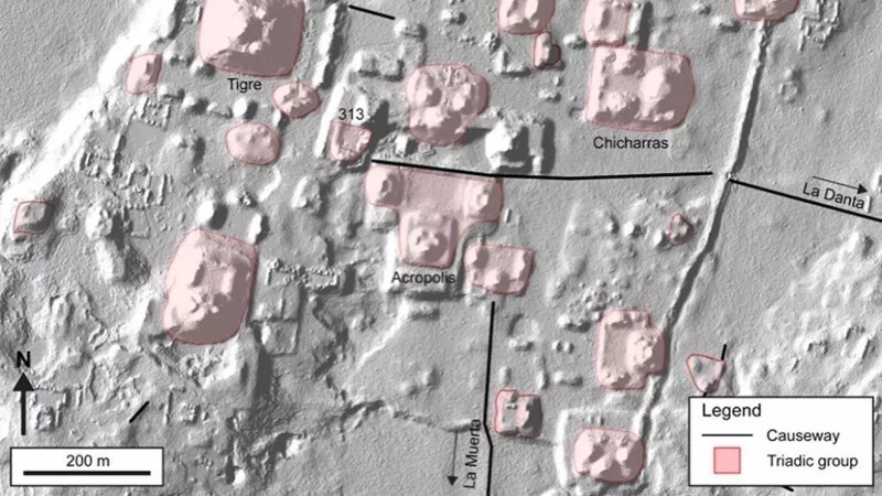Используя данные сканирования, команда обнаружила более 1000 поселений, разбросанных по региону, которые были связаны между собой дорогами протяженностью около 160 километров, по которым майя, вероятно, ходили пешком. Они также обнаружили остатки нескольких крупных платформ и пирамид, а также каналов и резервуаров для сбора воды.