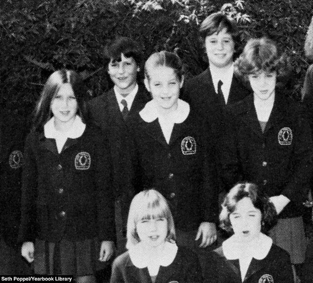 Лиза Мария на фотографии из альбома пятого класса начальной школы Le Lycée Français в Лос-Анджелесе (в центре). На момент фото 1979 года ей было около 11 лет.