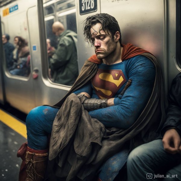 Как нам доказала рубрика "модники и чудаки из метро", в подземке можно встретить кого угодно. С этим также согласен цифровой художник Julian a.i. art. Он решил показать известных героев в образе уставших и грустных пассажиров метро, которые ползут домой после тяжелого рабочего дня. Давайте посмотрим на эту фантазию.