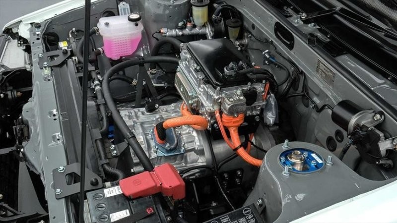 Corolla Levin же стала электромобилем. В движение приводится небольшим электромотором от гибридного пикапа Tundra, батареи взяты с «Приуса», а весь крутящий момент передаётся на заднюю ось через механическую коробку передач.