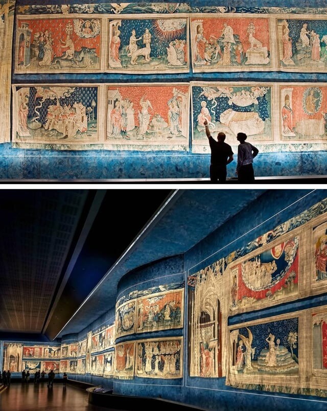 Гобелен "Апокалипсис", сотканный в Париже в 1377-1382 годах. На нем изображена история Апокалипсиса из Книги Откровения святого Иоанна Богослова в красочных изображениях, размещенных на 6 гобеленах, которые первоначально насчитывали 90 сцен