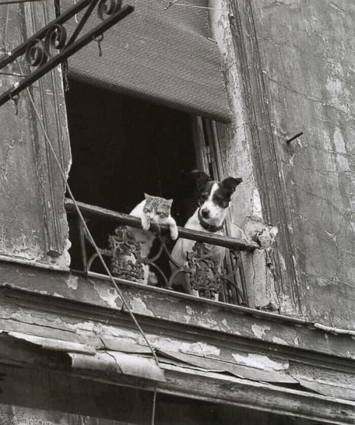 11. Здесь мы видим двух кошек в 1966 году. Они свято чтут рождественскую традицию ронять елку каждый год