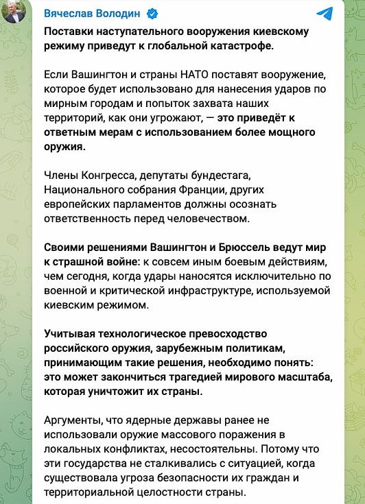 Работник ртом володин угрожает странам НАТО ядерным оружием и "катастрофой, которая уничтожит их".