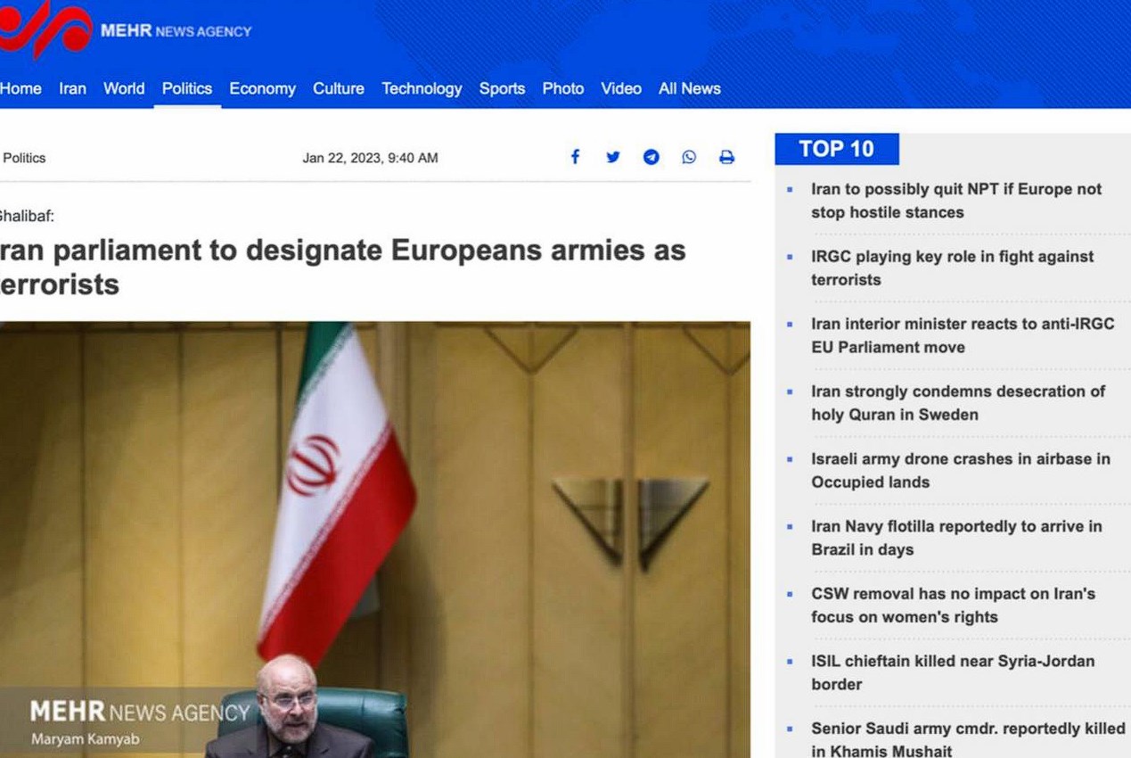 - В Иране хотят признать армии стран ЕС террористическими организациями и внести их в список экстремистских структур, — Mehr.