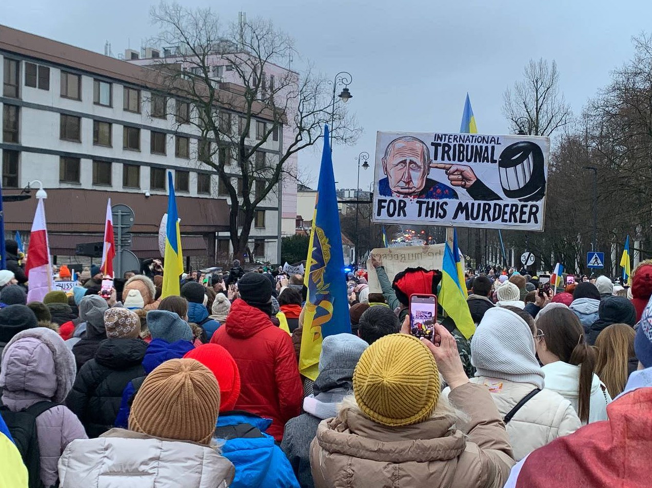 - Сегодня в Варшаве у посольства России прошел митинг в поддержку создания трибунала для путина и для всех военных преступников, причастных к трагедиям в Украине.