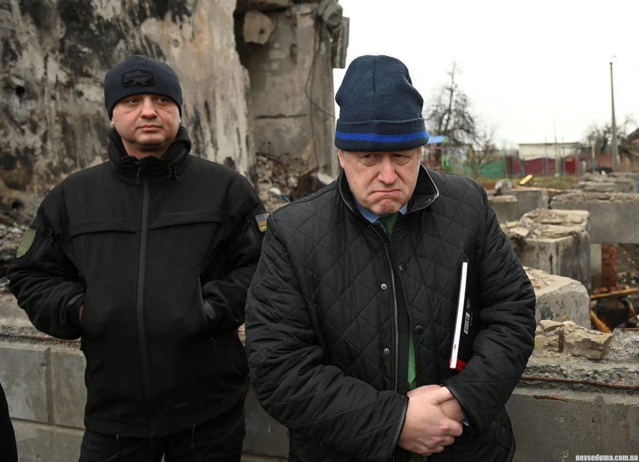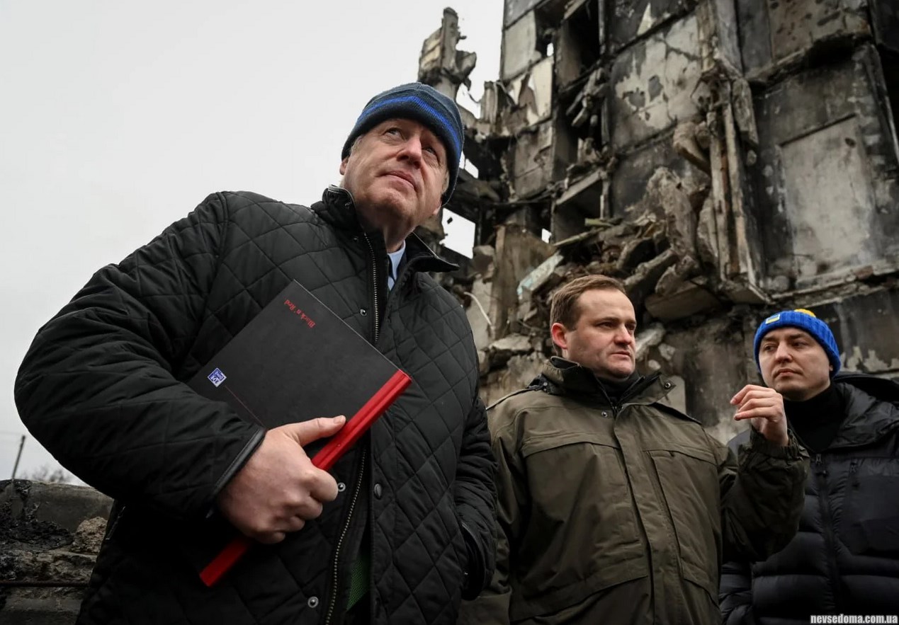 - Борис ДЖонсон (сейчас он просто депутат Парламента) посетил Киев, Бордянку и Бучу. В Бородянке Джонсон обговорил с министром иностраныых дел Кулебой будущий проект строительства новых домов.