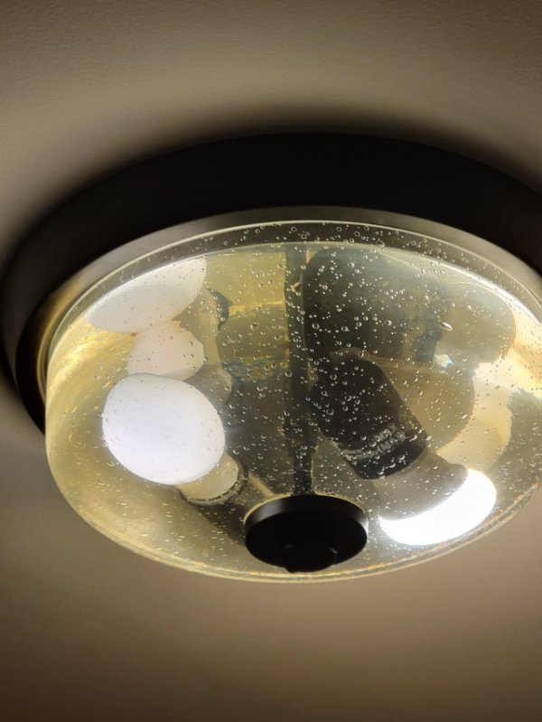 Сегодня наша лампа неожиданно наполнилась водой. Мы только въехали в нашу квартиру, и она новая