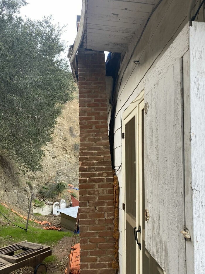 9. Интересная кирпичная кладка дымохода. Кто-то явно фанат контролируемого хаоса