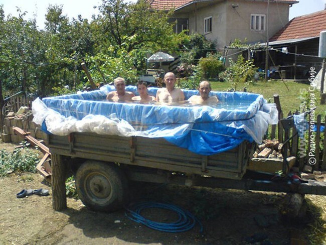 8. Бассейн в прицепе. Брезент, пластик, стяжка. Просто добавьте воды!