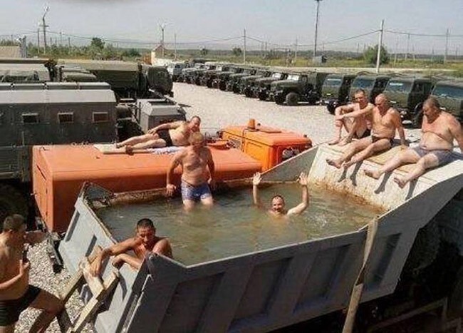 2. Бассейн в кузове самосвала. Хороший способ освежиться в разгар жаркого рабочего дня