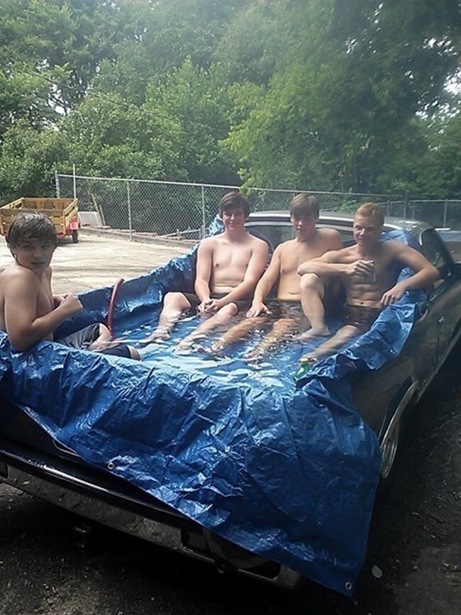 16. Гибридные автомобили — это круто и все такое. Но у этого парня есть машина, грузовик и бассейн в одном флаконе. Это ТРИбрид!