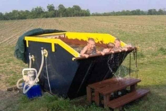 22. Бассейн на одного в маленьком мусорном баке. Дело в шляпе!