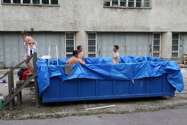 4. Бассейн в мусорном контейнере. Одна беда - неглубокий, нырнуть нельзя