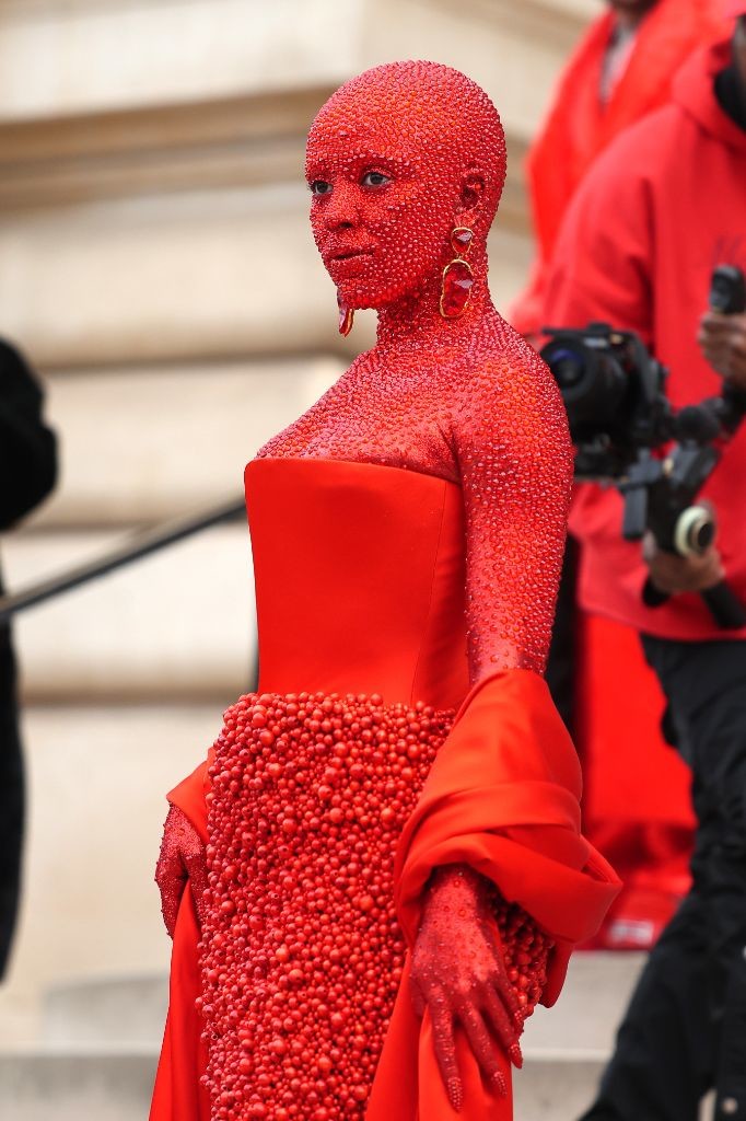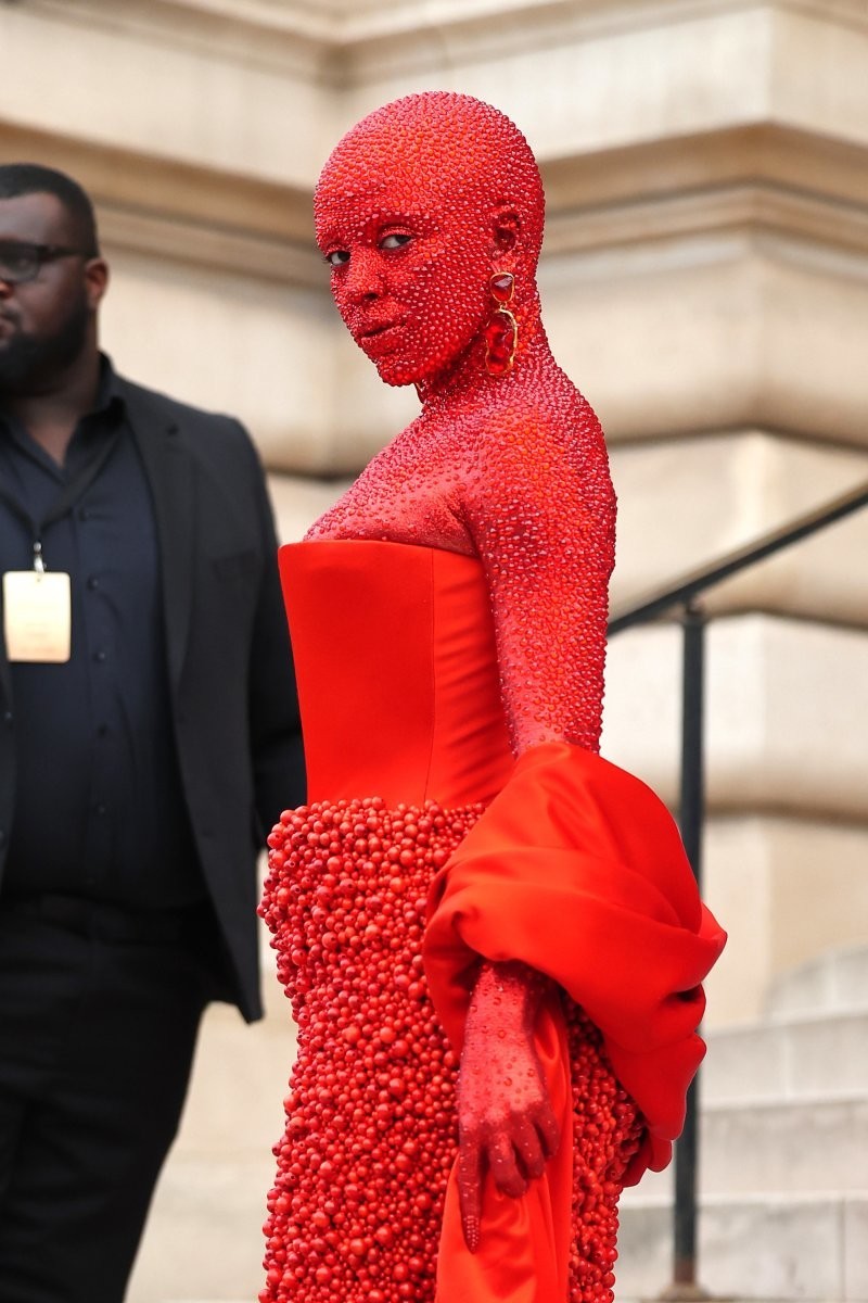 До Хэллоуина еще далеко, а Хайди Клум, кажется, уже сместили с трона королевы жутких прикидов... и вряд ли преднамеренно. Знаменитая рэперша Doja Cat затмила на показе Парижской недели моды абсолютно всех — и гостей, и моделей, — появившись в образе, способном до смерти запугать любого трипофоба: певица с головы до пят покрыла себя кристаллами Swarovski.