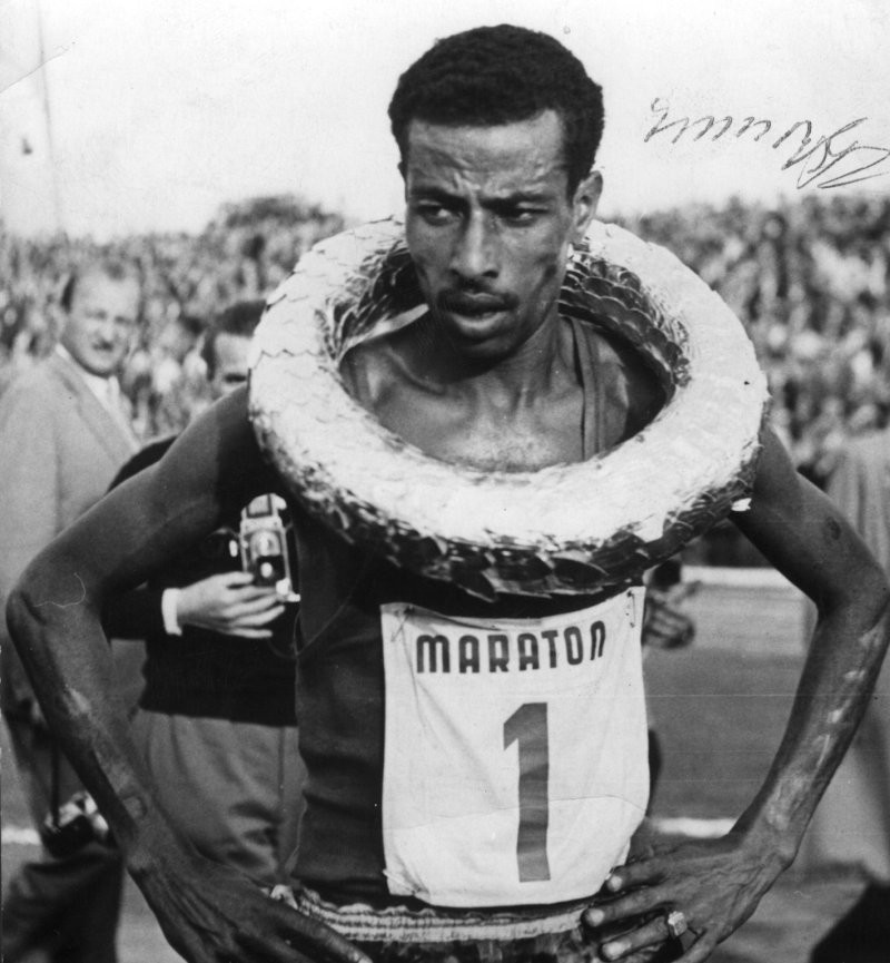 На протяжении всего забега Бикила соперничал со спортсменом из Марокко по имени Ради Бен-Абдессалам. И буквально на последнем километре сумел обойти марокканца и вырвать победу.