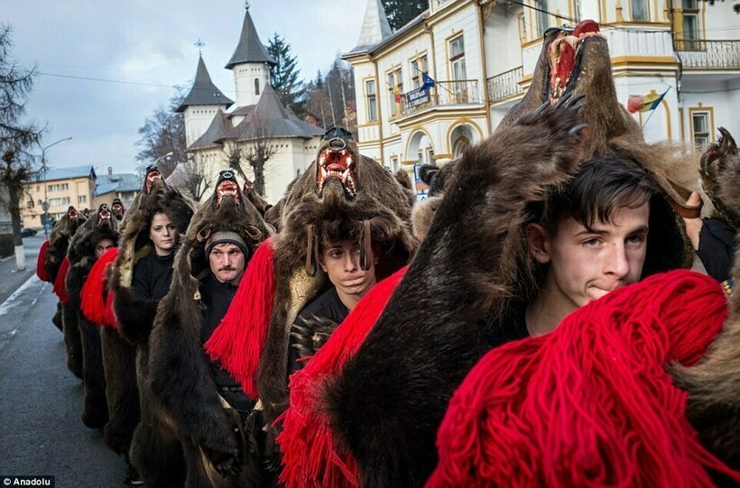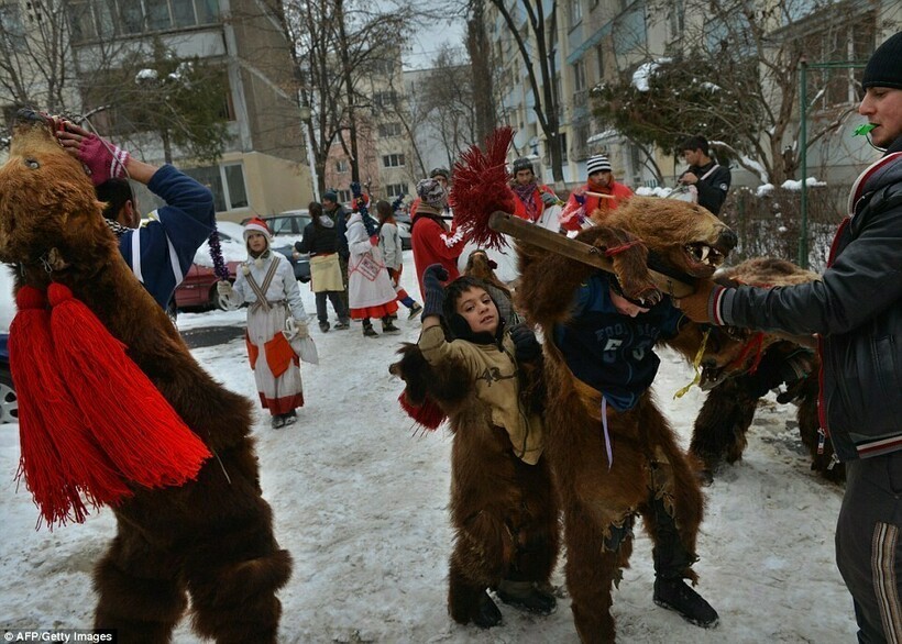 Зачем румыны наряжаются в шкуры медведей и танцуют на улицах (7 фото + 1 видео)
