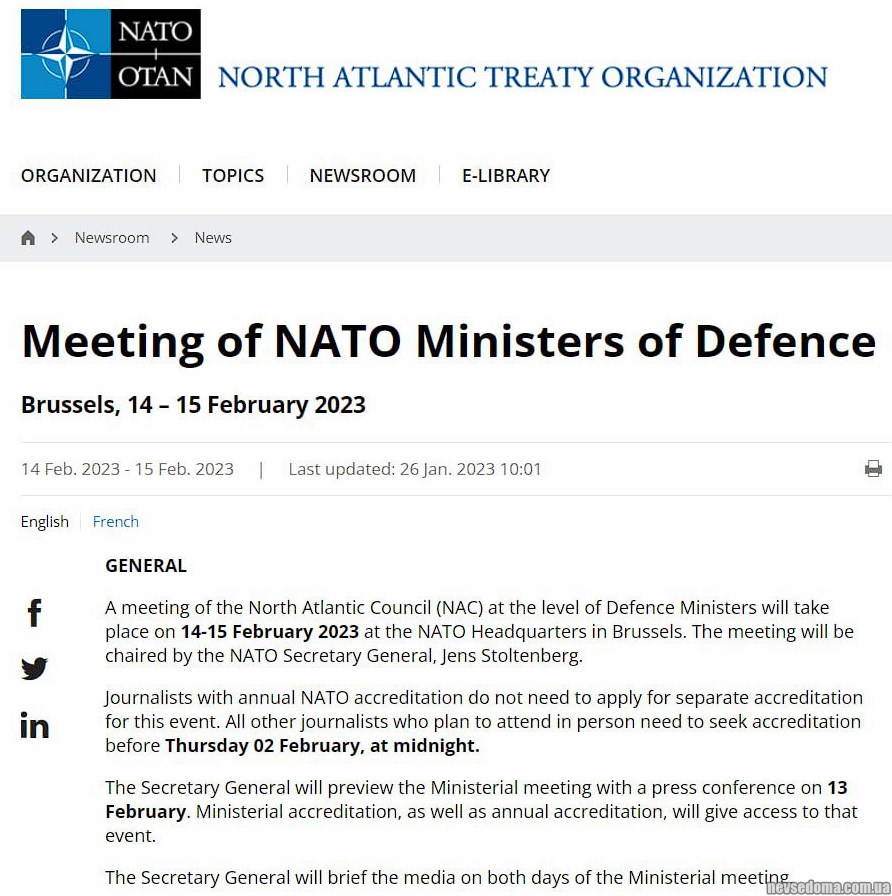 - Встреча формата Рамштайн состоится в штаб-квартире НАТО 14 февраля.