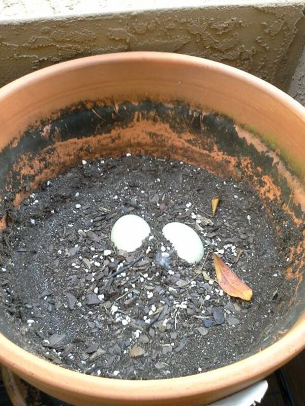 Женщина заметила в своём цветочном горшке несколько яиц (10 фото)