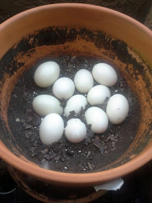 Но мать-утка появилась на третий день. Она спокойно высиживала яйца, и женщина никак её не беспокоила во время этого чудесного процесса. За несколько дней в горшке появилось уже 11 яиц, и мать периодически приходила, чтобы их высиживать. Всё это время женщина и члены семьи с любопытством наблюдали за яйцами.
