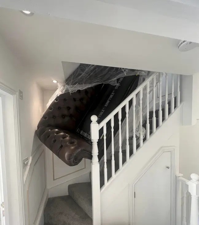 27-летний Люк Анселл из Борнмута рассказал в соцсетях, что его новый диван должен был быть доставлен в целости и сохранности в его дом в Борнмуте. Но вместо того, чтобы отнести диван на нужное место, грузчики намертво забаррикадировали им лестницу. Анселл утверждает, что водители рекомендовали ему срезать перила, чтобы мебель могла пройти.