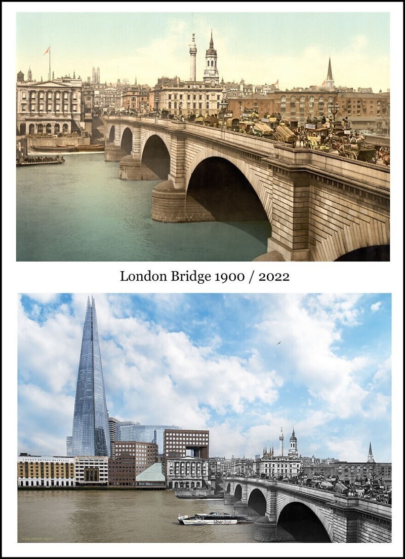 30 коллажей из старых и новых фотографий, сделанных с одной точки (31 фото)