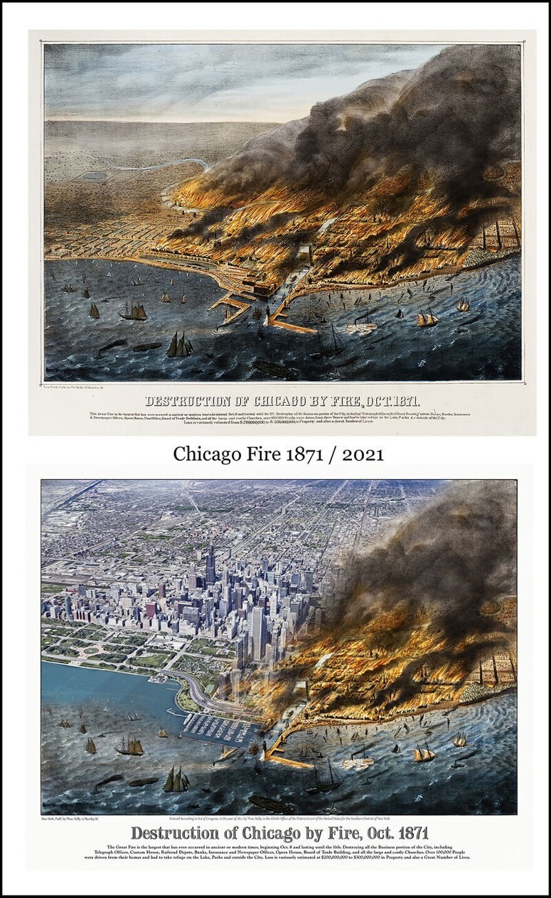 И вот однажды в 2016 году я наткнулся на очень старые фотографии Чикаго, где я живу уже более 20 лет. Эти фотографии относятся к концу 1800-х и началу 1900-х годов. Я подумал, что было бы интересно найти эти места, сделать идентичные снимки через сто лет и сравнить их с оригиналами. Я взял несколько и посмотрел на них рядом с оригиналами. Я даже не знал, что для этого есть название: рефотография — снимки одного и того же места с одной и той же точки зрения в два разных момента времени.