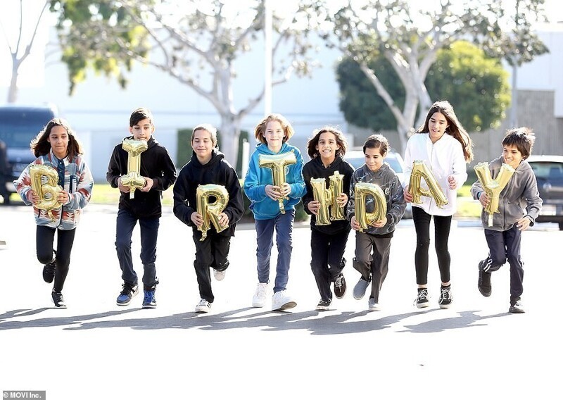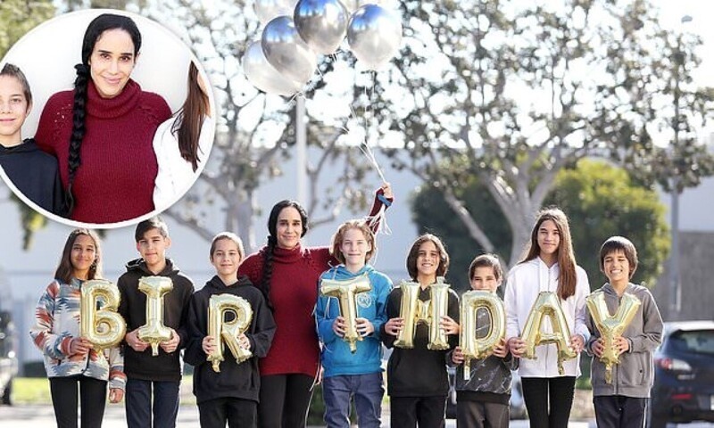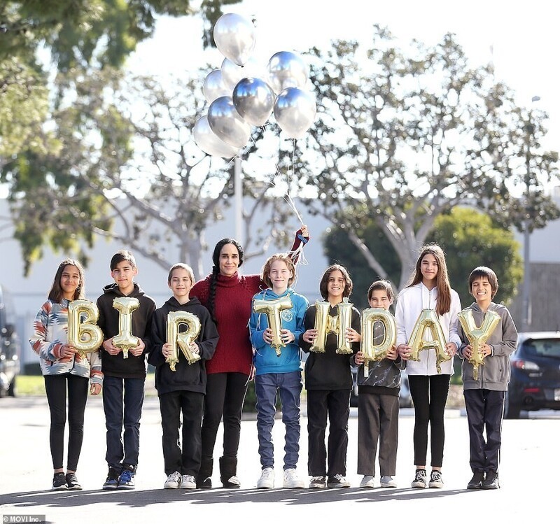 Улыбаясь рядом со своей знаменитой матерью, дети позировали перед фотографами с золотыми воздушными шарами, на которых было написано «ДЕНЬ РОЖДЕНИЯ». При этом у Октомамы есть еще шесть детей, так что в общей сложности в ее семье 14 лет.