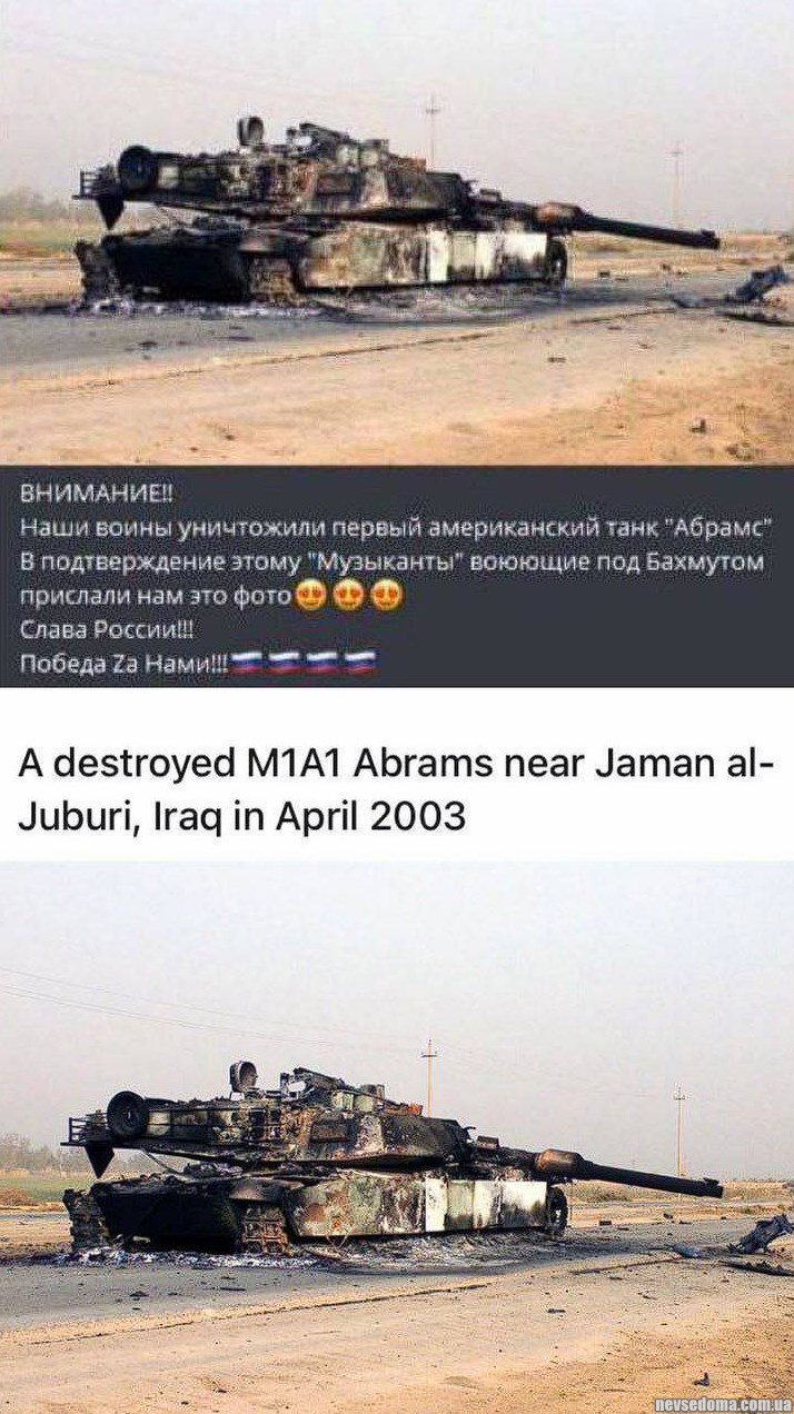 Фото 1: заявление россиян об уничтожении Абрамса под Бахмутом