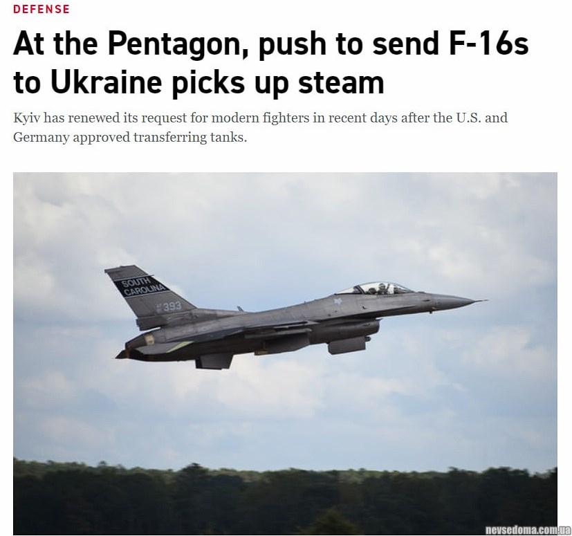 По словам (https://www.politico.com/amp/news/2023/01/28/pentagon-send-f-16s-ukraine-00080045) трех человек, знакомых с дискуссиями, группа высокопоставленных военных чиновников незаметно подталкивает Пентагон к одобрению отправки истребителей F-16 в Украину, чтобы помочь нашей стране защитить себя от российских ракет и беспилотников.