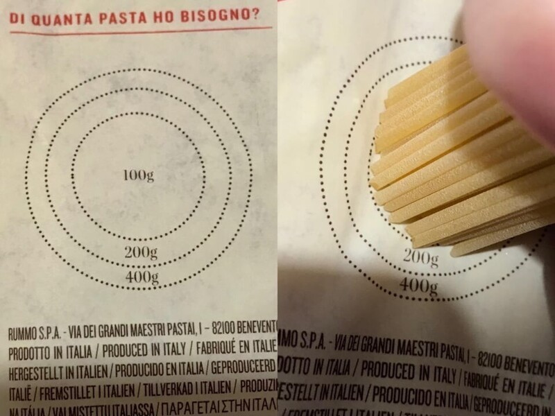 На упаковке макарон есть рисунок, позволяющий измерить количество макарон без шкалы
