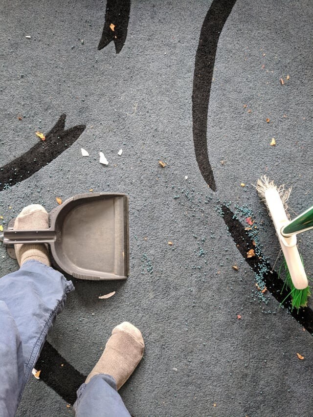 В совке есть специальное место для ноги, поэтому вам не нужно наклоняться, чтобы собрать мусор