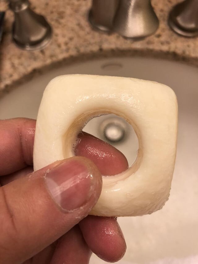 Менеджеры этого отеля разумно решили, что лучше использовать мыло с дыркой посередине, поскольку обычно никому не удается использовать весь брусок
