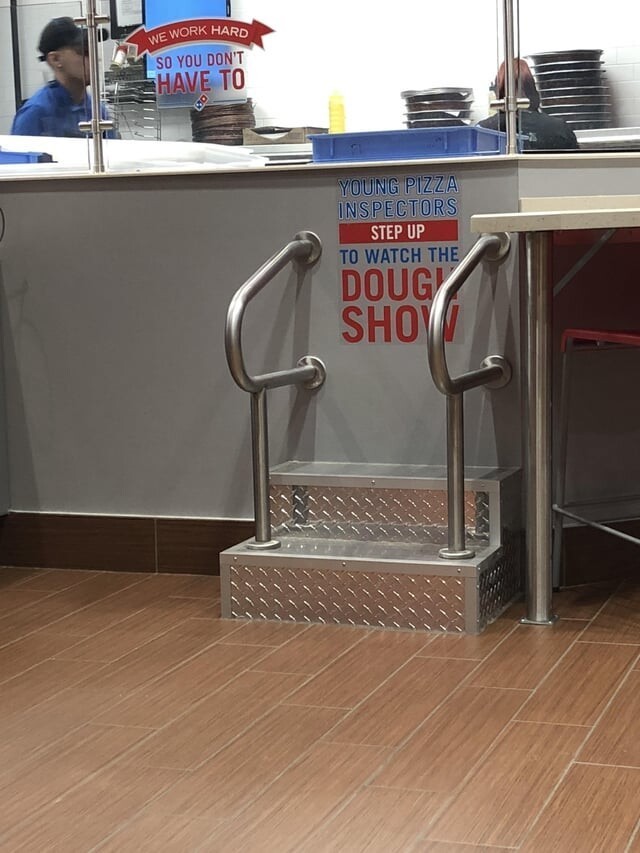 В этой пиццерии установлена небольшая лестница, чтобы дети могли наблюдать, как готовится пицца