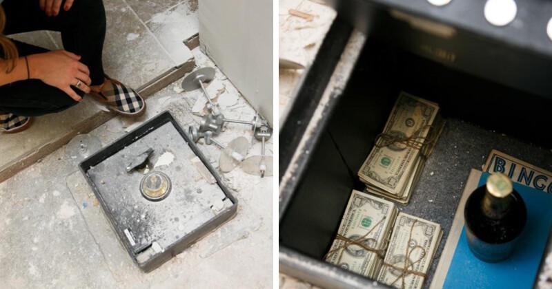 Когда супруги только въехали, они нашли код от сейфа в аптечке. Они не были уверены, чему принадлежал код, но сохранили его на всякий случай. Сейфу на вид было около 10-20 лет, и после нескольких попыток открыть его он, наконец, разблокировался.