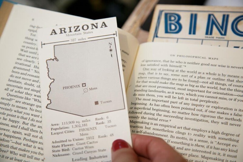 Когда они добрались до страницы 7, они нашли карту Аризоны. Сначала они решили, что это закладка, но это была именно карта с крестиком над городом Меса недалеко от Феникса. На лицевой стороне карты был контур Аризоны, выделенный зеленым цветом среди других горных штатов.