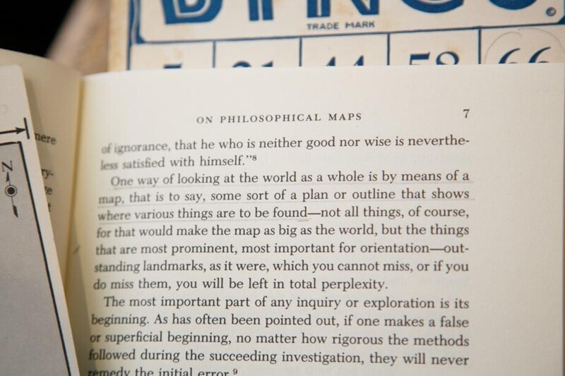 Кроме того, на странице 7 была подчеркнута строка в главе «О философских картах». Она гласила: «Один из способов взглянуть на мир в целом — это использовать карту, то есть своего рода план или набросок, показывающий, где можно найти различные вещи».