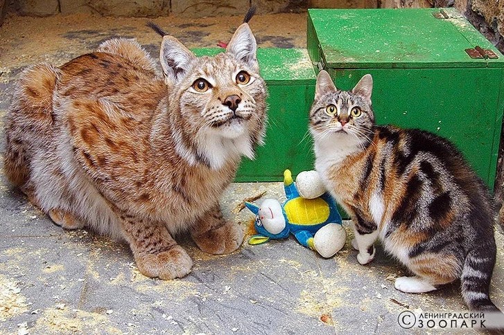 Кошка проникла в вольер рыси, и они стали лучшими подругами