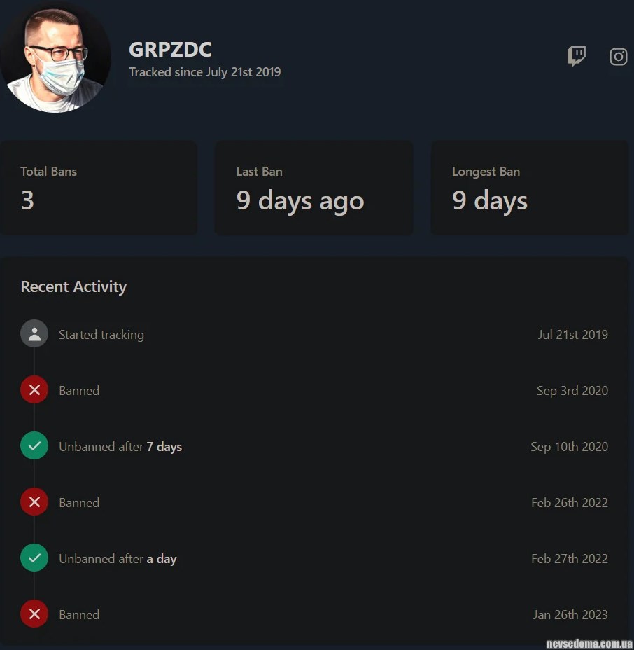 - Прокремлевского стримера Z пропагандиста GRPZDC наконец-то забанили на Twitch. Его товарищ Стас с низким айкью так просто в очередной раз ноет про свободу слова. Спасибо всем кто писал и отправлял репорты.