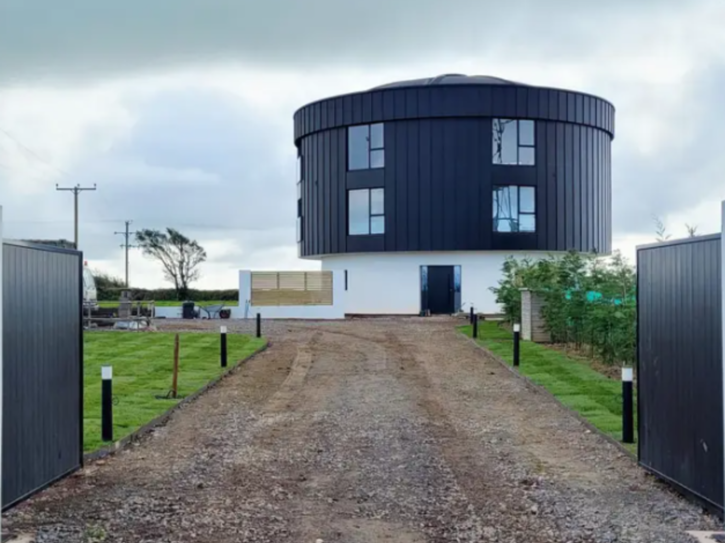 Хант превратил заброшенную водонапорную башню в стильный трехэтажный дом. Вместо того, чтобы оставить голый бетонный фасад, он покрыл башню черной облицовкой и покрасил основание дома в белый цвет для контраста. Окна теперь огибают все здание, открывая панорамный вид на окружающую сельскую местность.