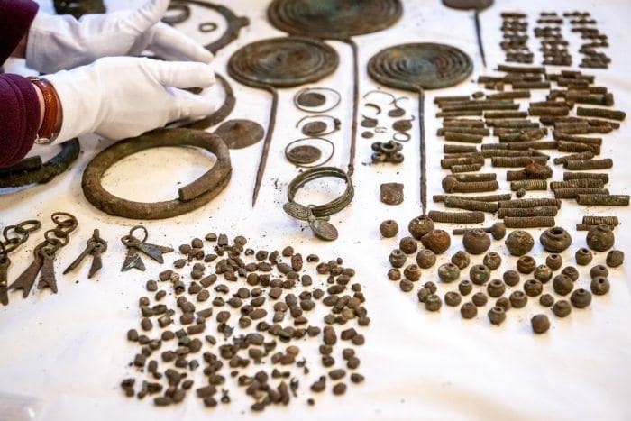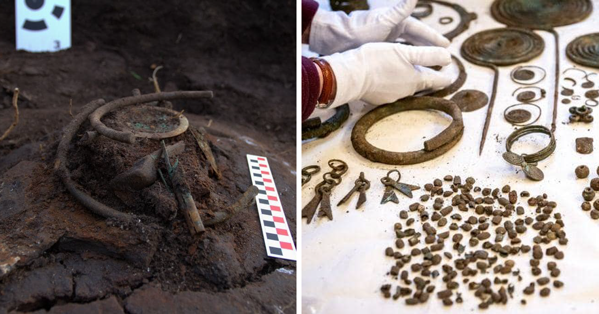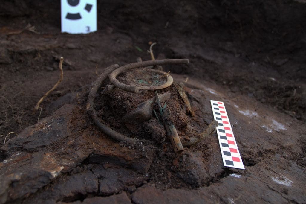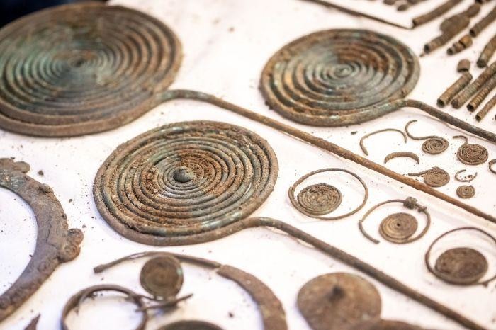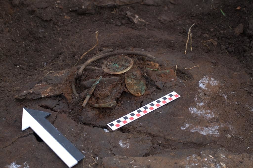 В ходе раскопок в земле было найдено множество древних артефактов. Ученые обнаружили три залежи, заполненные целыми или поврежденными украшениями и бронзовыми изделиями, использовавшимися, по всей вероятности, в церемониальных целях. Среди находок были ожерелья, браслеты, поножи, конская упряжь и булавки со спиральными головками.