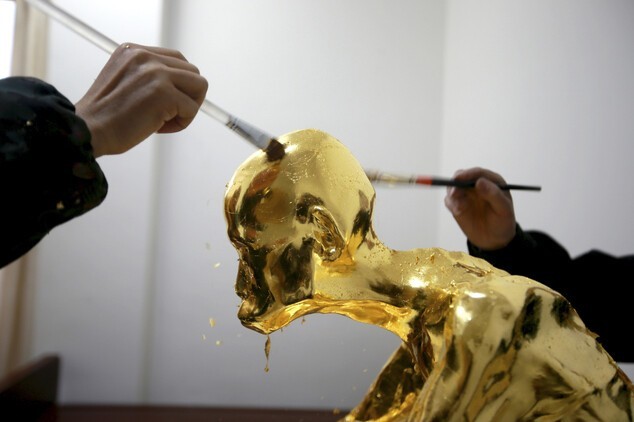 Затем тело вымыли, покрыли слоями марли, лаком и, наконец, несколькими слоями сусального золота.