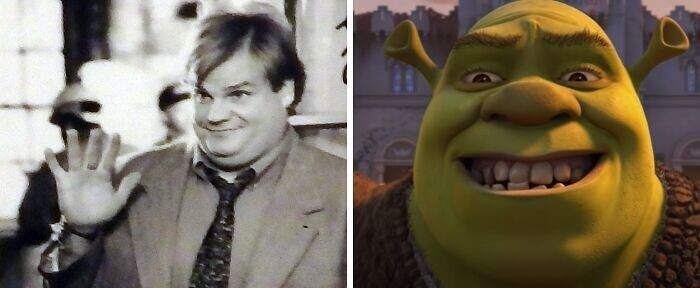 Криса Фарли, ветерана передачи «Субботним вечером в прямом эфире», позвали озвучивать главного героя в мультфильме «Шрек» 1995 года. К сожалению, Фарли скончался в 1997 году, не успев закончить работу над проектом. Роль передали коллеге Фарли по передаче Майку Майерсу, а тот настоял на том, чтобы наделить Шрека своим характерным шотландским акцентом.