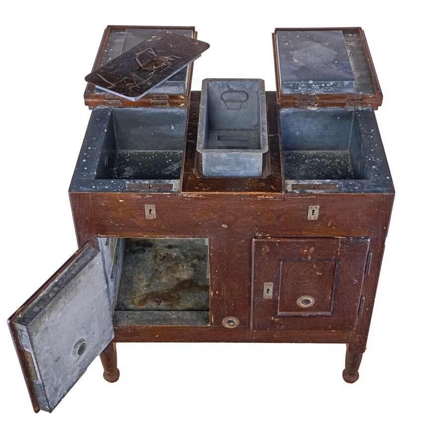 Внутри таких холодильных шкафов были специальные отсеки для льда или снега.