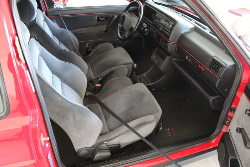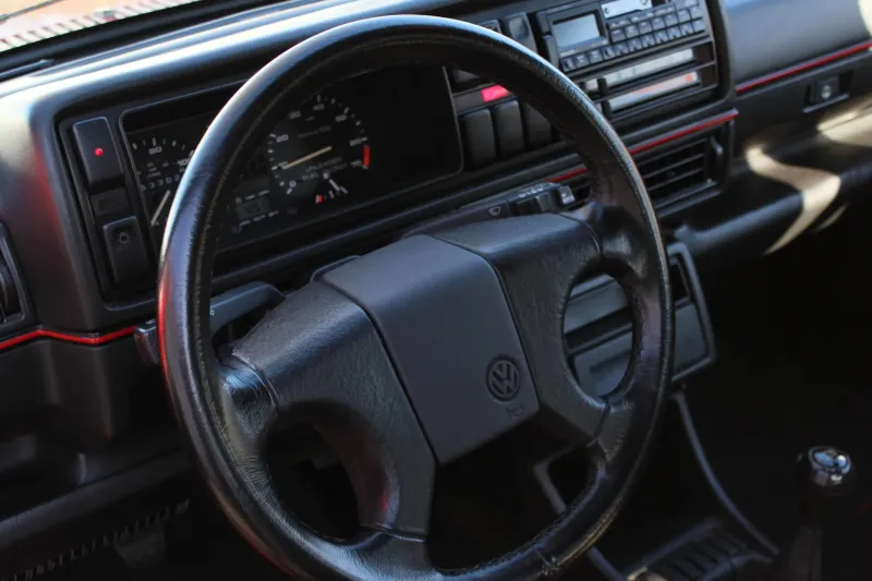Хэтчбек укомплектован двухлитровым мотором на 134 л.с. и 180 Нм крутящего момента в сочетании с пятиступенчатой механической коробкой. В оснащение VW Golf GTI включены колёсные диски BBS на 15 дюймов, кресла Recaro с тканевой отделкой, люк, кондиционер и кассетная магнитола Philips.