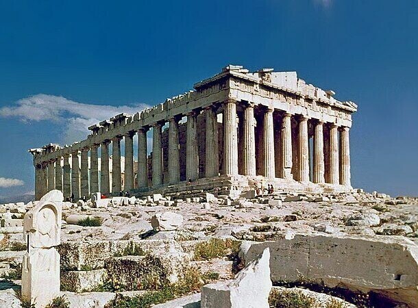 Парфенон — храм на Афинском Акрополе в Греции, посвященный богине Афине, покровительнице Афин. Он был построен в 5 веке до нашей эры и считается одним из самых важных образцов классической греческой архитектуры.