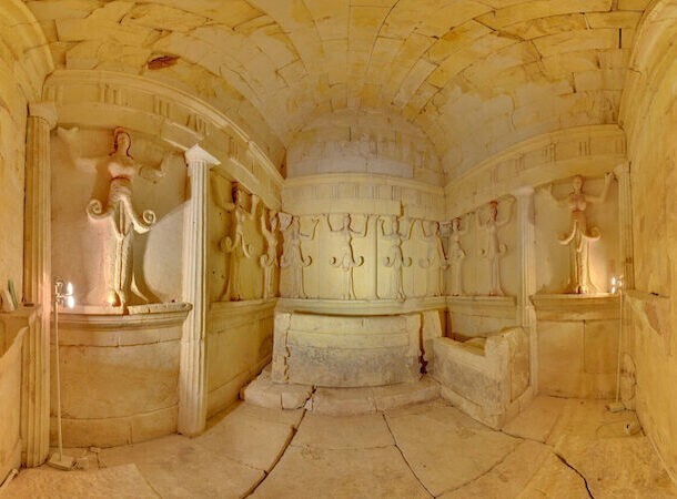 Это древняя гробница, расположенная в селе Свештари, Болгария. Она датируется 3 веком до нашей эры, принадлежит древней фракийской культуре и хорошо сохранилась.
