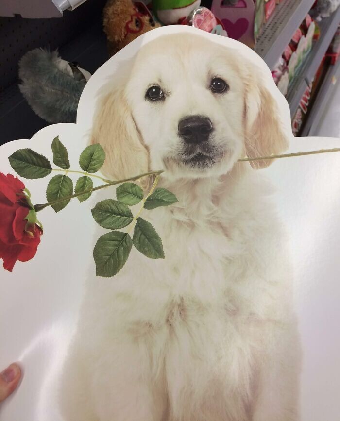 9. На открытке ко Дню всех влюбленных роза проткнула несчастному псу челюсть