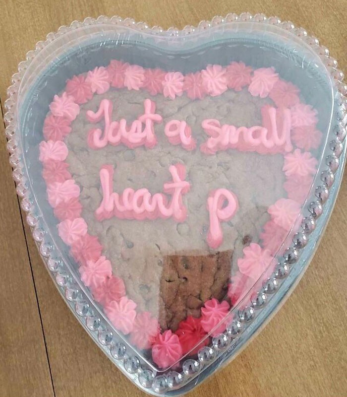 23. "Сестра не хотела ничего писать на торте ко Дню святого Валентина, поэтому попросила «просто маленькое сердечко, пожалуйста»"