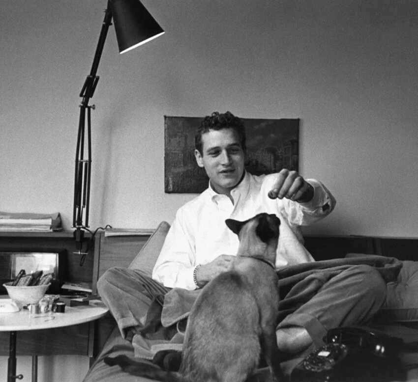 Актёр Пол Ньюман с любимым котом, ~ 1950-е