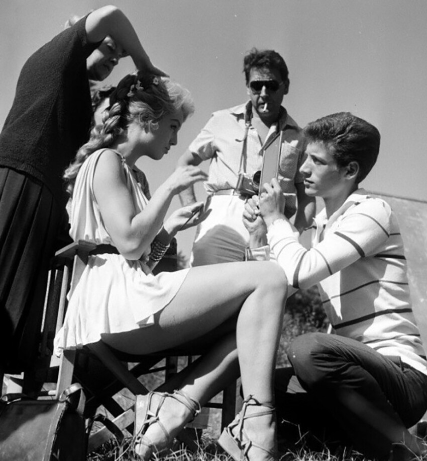 Милен Демонжо во время съемок фильма «Марафонский великан», 1959 год